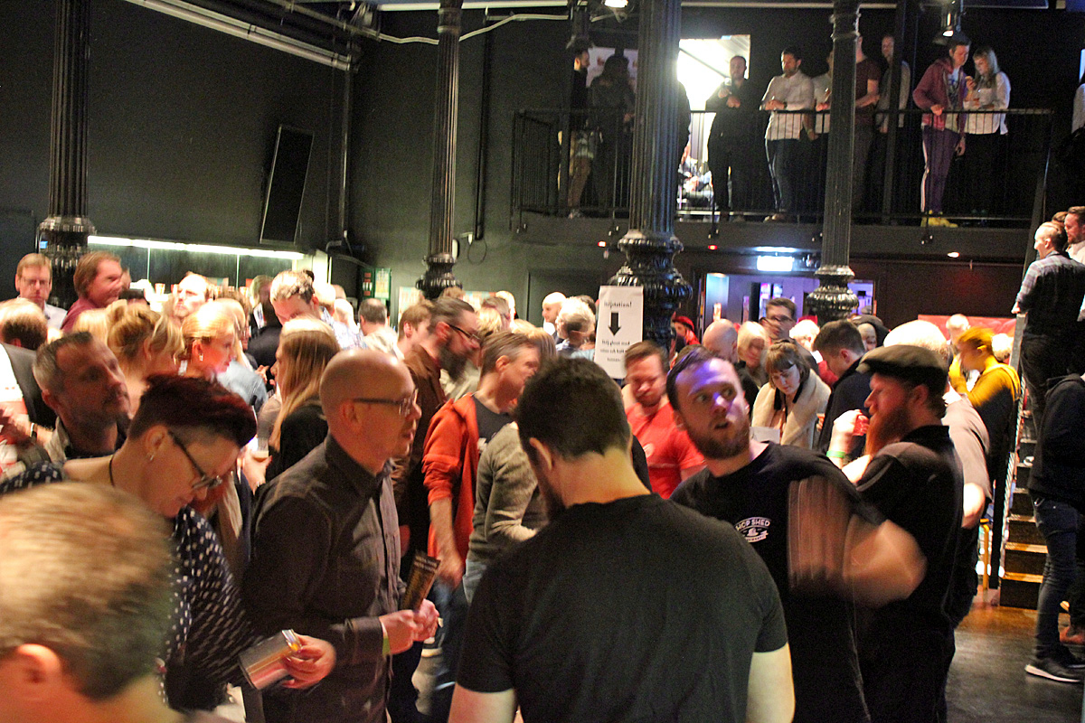 Redan efter en timme var det runt 250 besökare på plats och på sina ställen kunde det bli trångt, men med de 21 utställarna väl spridda i lokalen behöver man sällan köa för sin öl.