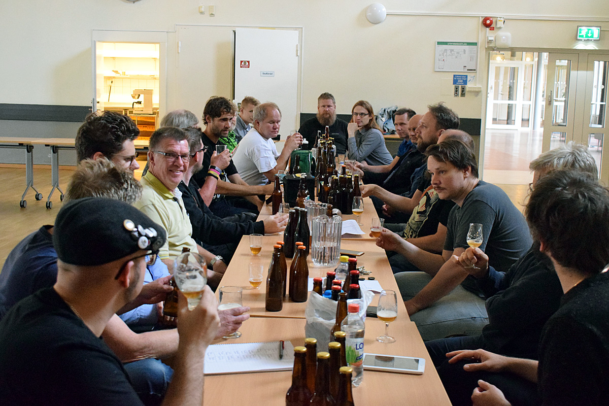 Ett 20-tal entusiastiska hembryggare dök upp för att prova sina egna och andras öl. En hel del humlesorter hann man gå igenom under kvällen.
