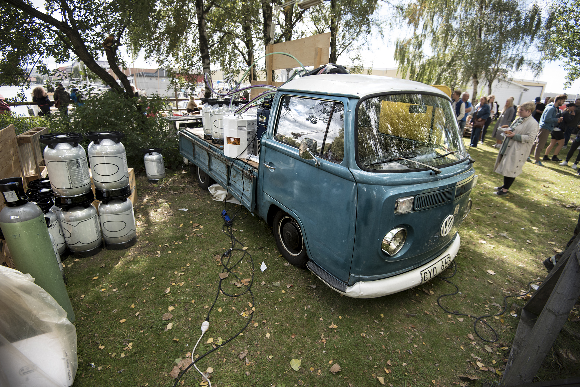 Det såg inte så lovande ut först för Stigberget och Vega som fanns på plats på Ringön i lördags med en vw-buss modell … speciell! Men regndropparna som hotade innehållet i besökarnas ölglas försvann rätt snabbt och en lång kö bildades framför folkabussen.