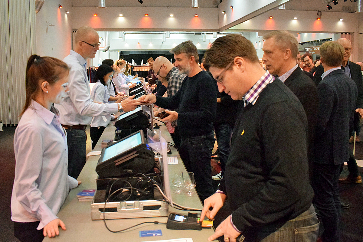 Trots att det fanns många kassor var det en del kö när besökarna ville köpa dryckesbiljetter.