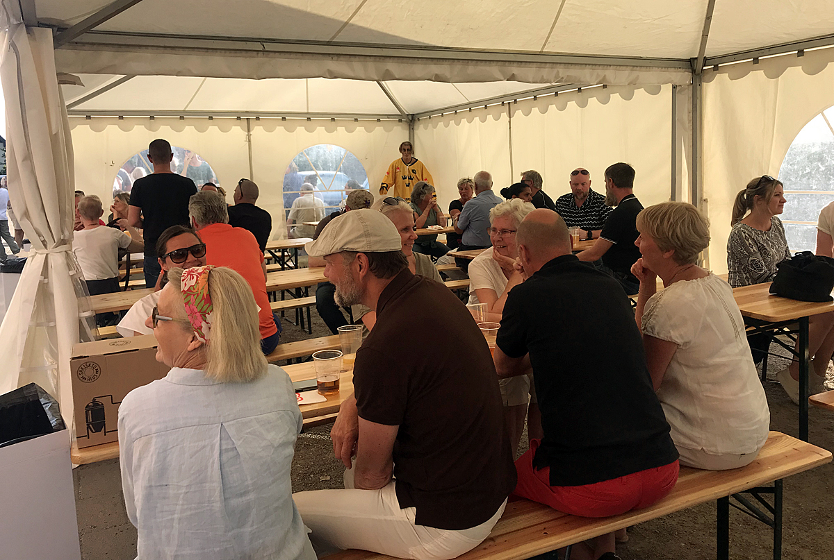Det var en hel del besökare som satte sig ner i det tält som ställts upp vid kiosken.