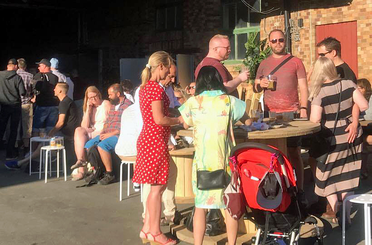Under eftermiddagen fyllde det på bra med folk som ville dricka en öl i solskenet och även se hur den nya bryggeripuben var uppbyggd.