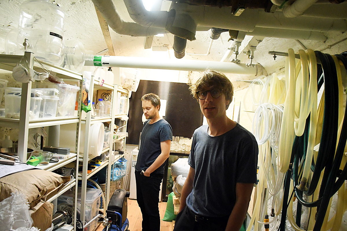 En del av ytorna i källaren används av nystartade bryggeriet Underjord Brygghus. Rasmus Acking, Oliver Boson och Mattias Andersson driver bryggeriet som ska förse Bottle Shop med en hel del folköl.