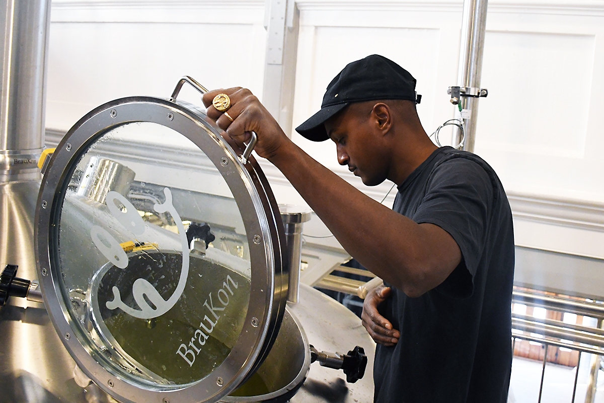 Även under Beernews besök bryggdes det öl. Henok Fentie stannade till lite extra för att ta in doften från vörten.