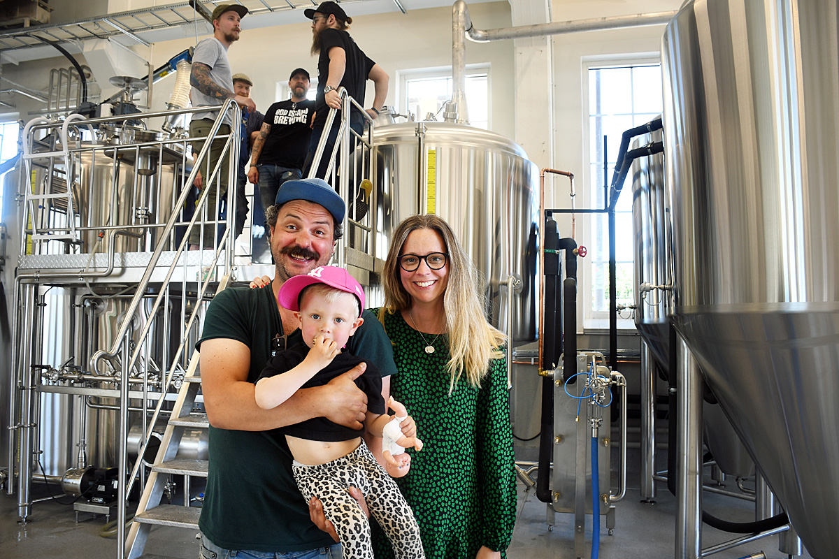 Nu är bryggningen äntligen i gång. Jonas Gustavsson, Jennie Nilsson och sonen Sigge fick uppleva en speciell dag med det nya bryggeriet.