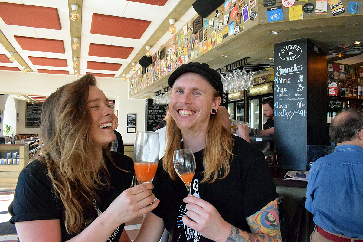 Anna Claesson och Niklas Aronsson var på ett strålande humör när deras öl serverades på Tullen Lejonet i Göteborg.