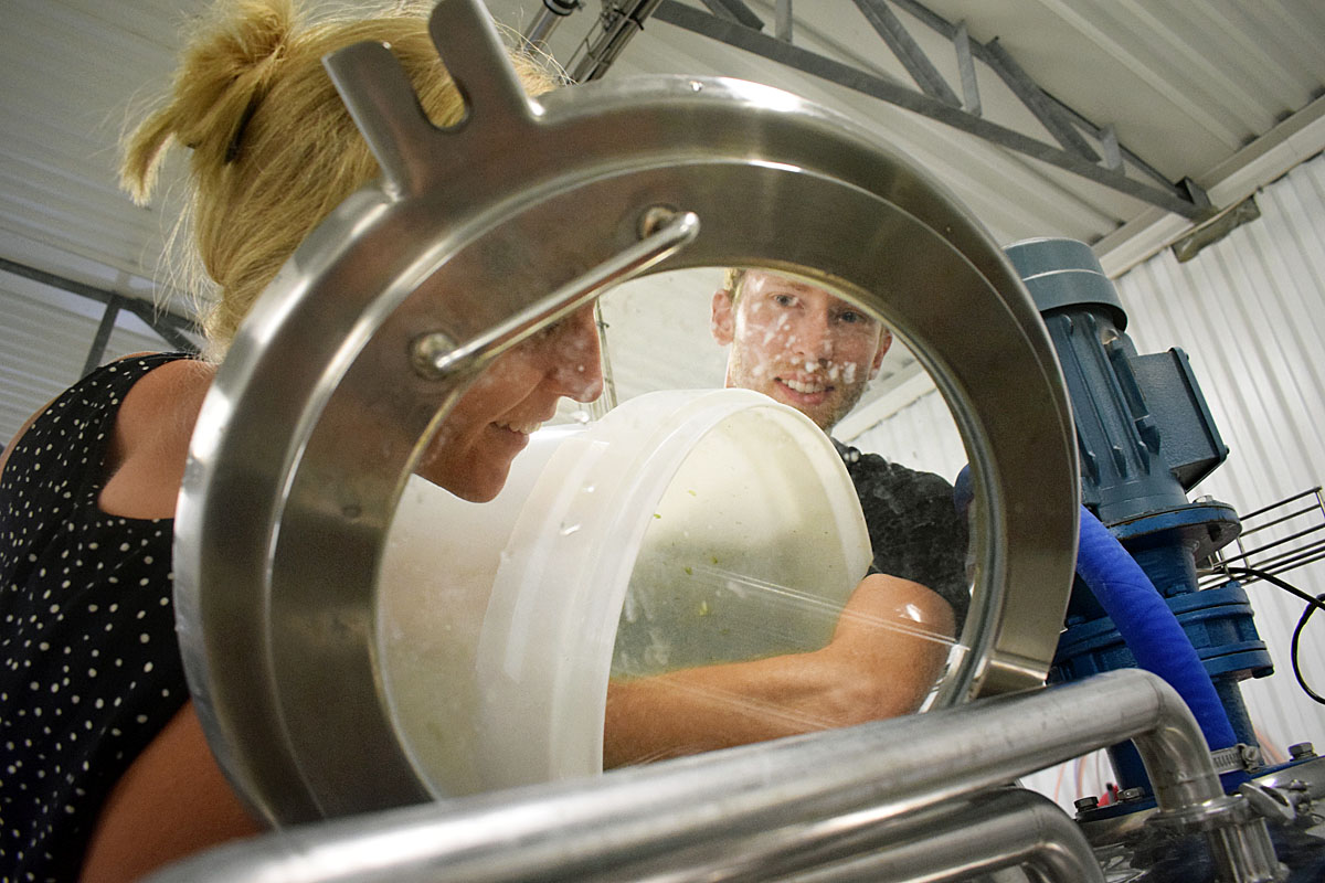 När humlen var skördad bar det av till bryggeriet, där Peter Robertsson hade förberett genom att göra kokningen medan plockningen pågick. Att brygga med färska kottar var en ny utmaning, men Robertsson hade fått en del hjälp från andra sidan jorden.