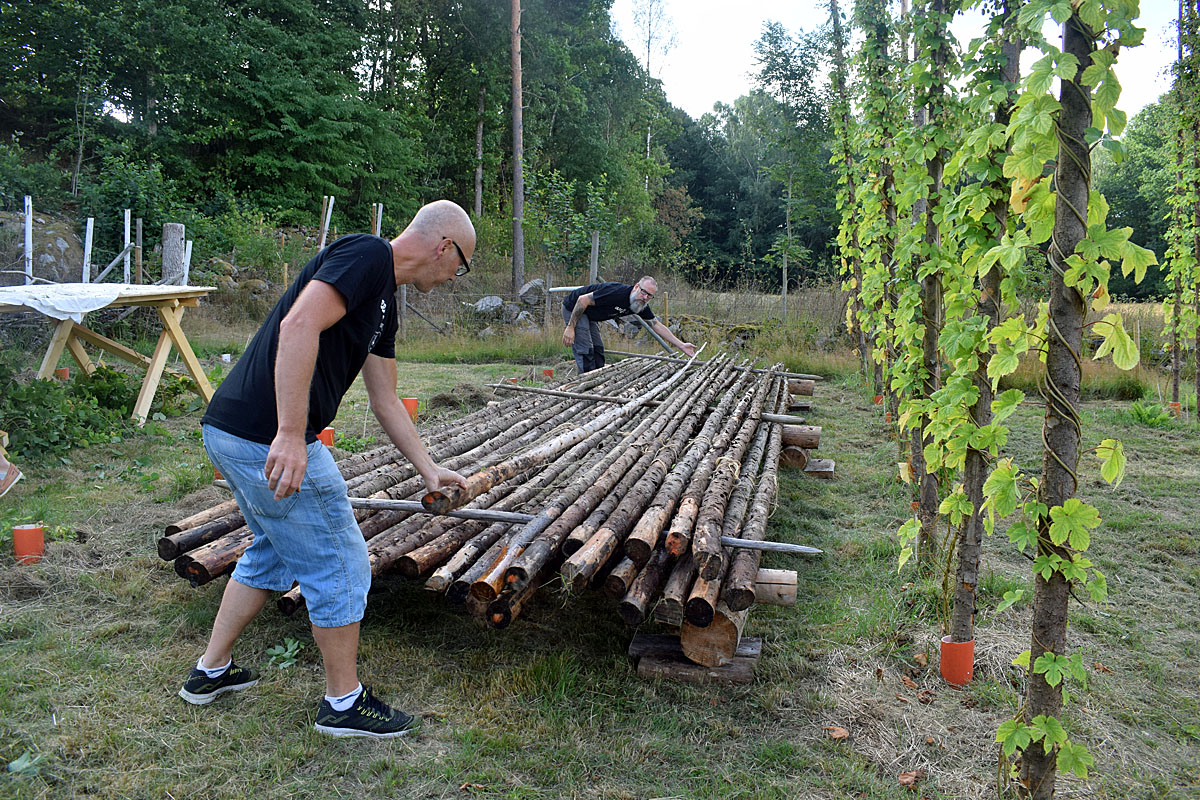När humlen var skördad bar det av till bryggeriet, där Peter Robertsson hade förberett genom att göra kokningen medan plockningen pågick. Att brygga med färska kottar var en ny utmaning, men Robertsson hade fått en del hjälp från andra sidan jorden.