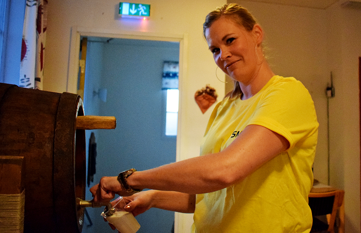 Jeanette Olsson är bosatt i Söderbärke och serverade öl från det speciella litauiska fatet med öl.