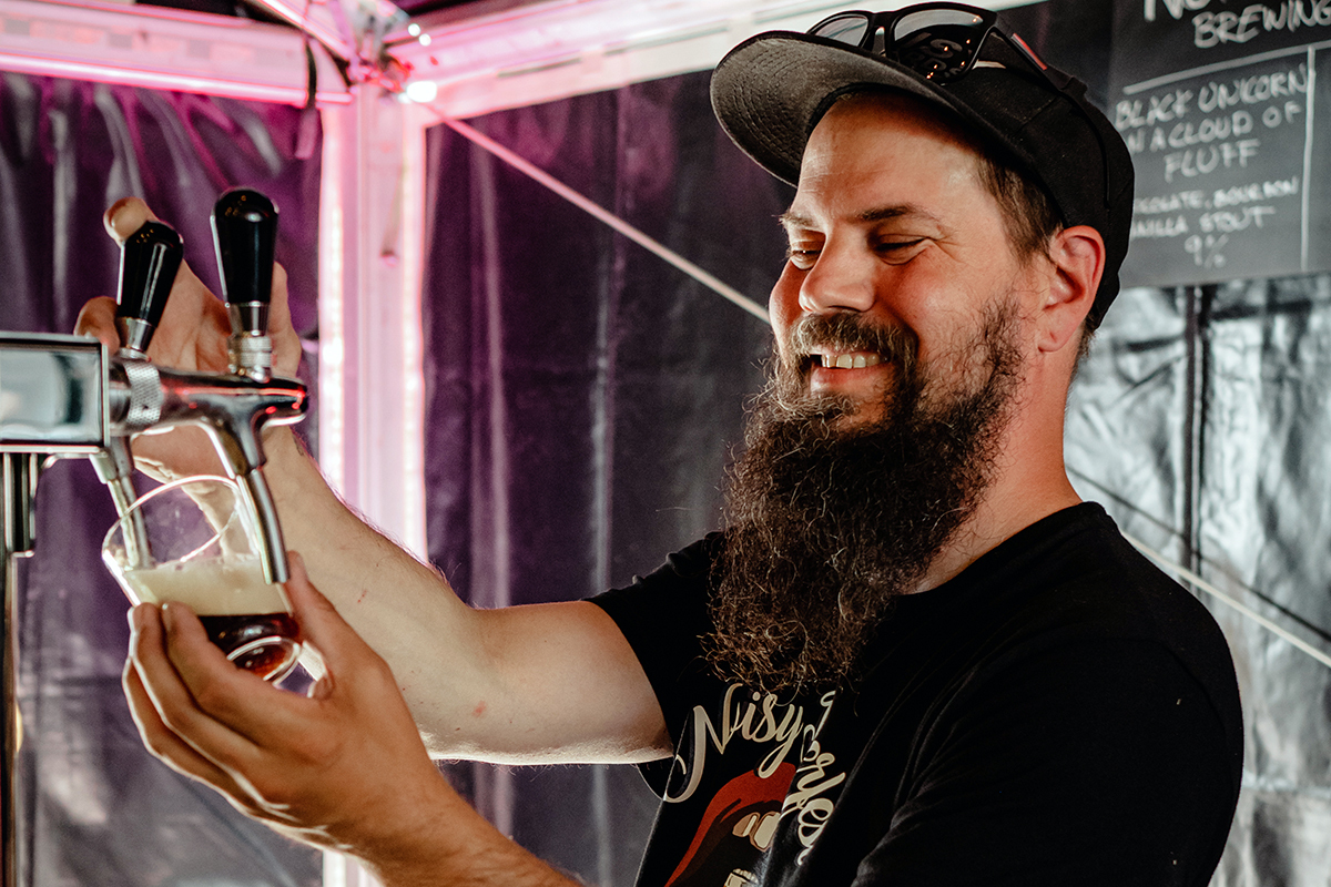 Olle Groth serverade öl från arrangerande Noisy Bastards. Foto: Rania Rönntoft