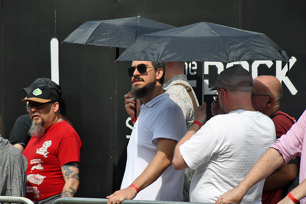 Paraplyer kan även skydda mot sol. Björn Löfgren såg till att det inte blev för varmt före festivalen.
