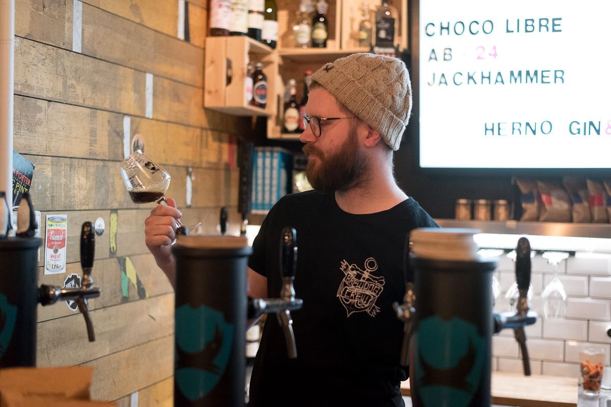 – Men jag är tveksam till om det sprider sig, men det var kul att göra nåt som inte är så pretto, säger Victor Bernklev som dagen till ära hade återvänt till sin gamla arbetsplats. Numera jobbar han centralt på Brewdog.