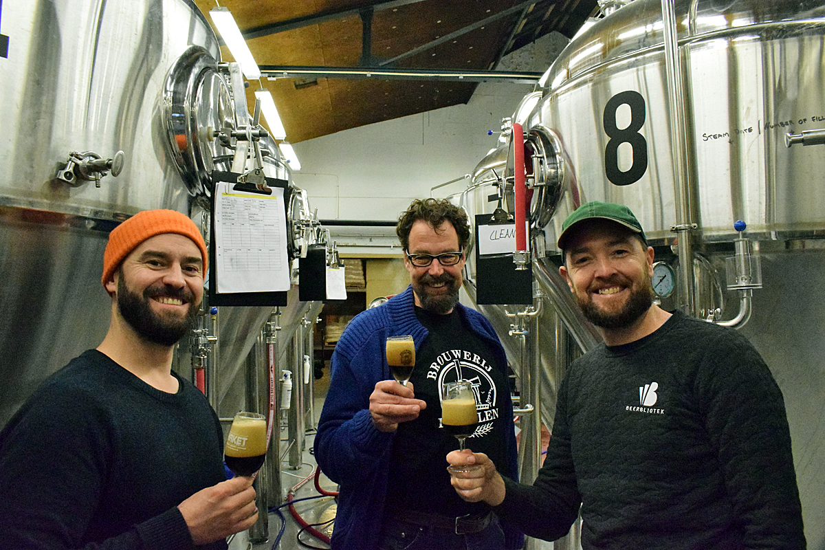 Richard Bull, Menno Oliver och Adam Norman hade en trevlig dag när de bryggde öl tillsammans.