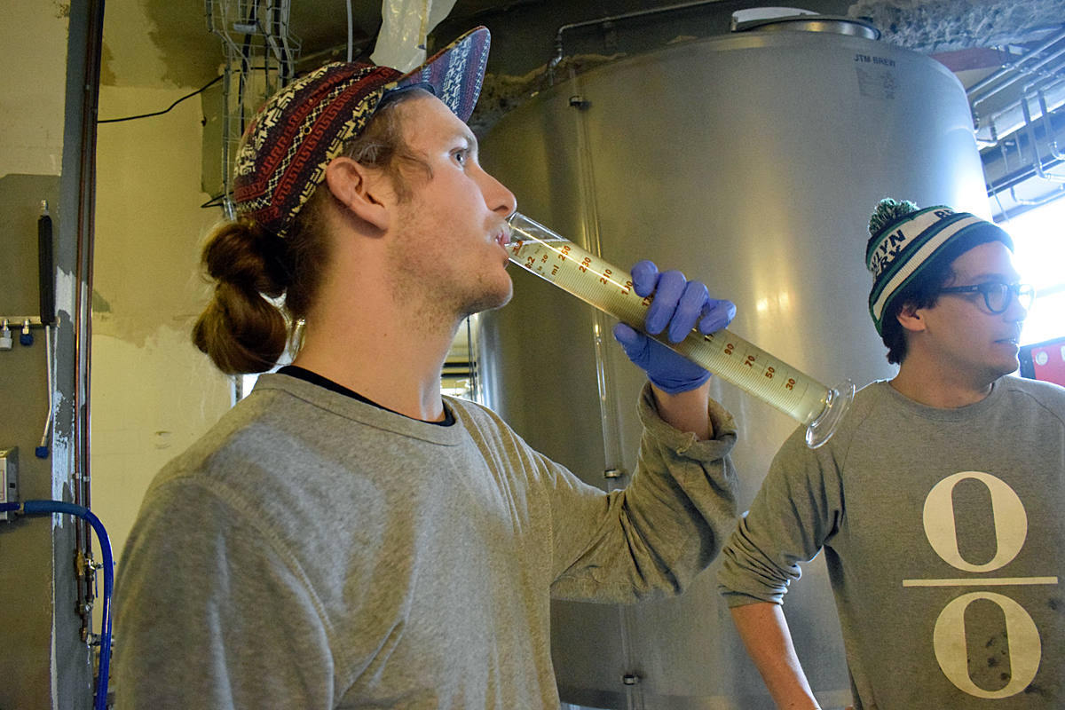 Simon Karlsson provade vörten till den dubbel-IPA som bryggdes av Stigberget och Omnipollo under torsdagen.