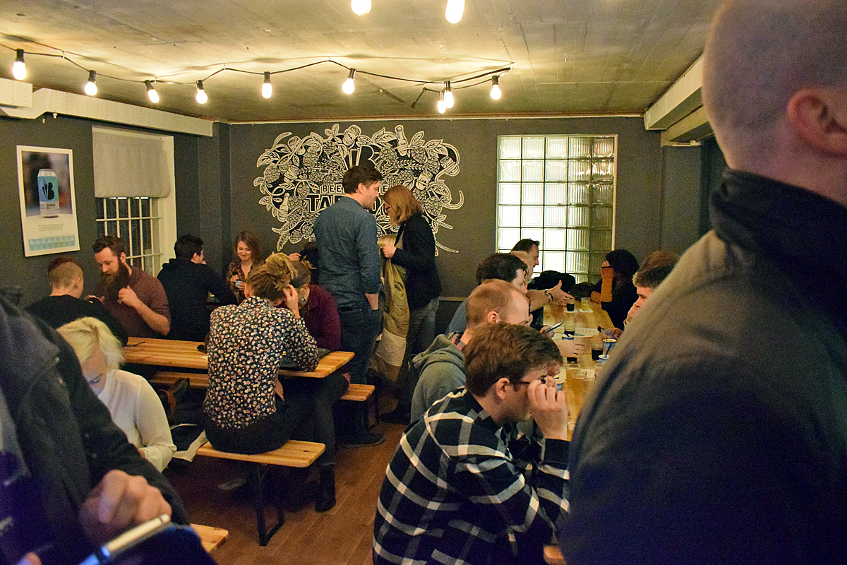 Kombinationen av glass och öl lockade många till Beerblioteks taproom.