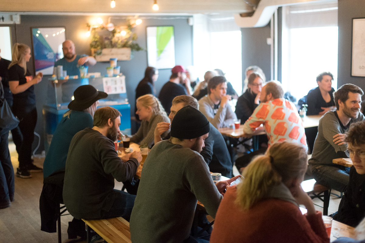 Alla bord var upptagna och några hade till och med fått sätta sig i entrén för att få plats när Beerbliotek öppnande glasslådorna.