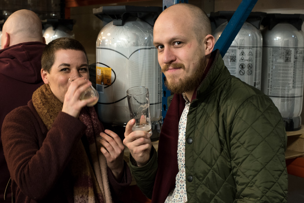 Sittplatserna räckte inte till och folk stod och trängdes mellan borden. Många av besökarna var anställda som jobbar i närliggande industrifastigheter och de verkade rätt nöjda med att kunna dricka öl så nära.