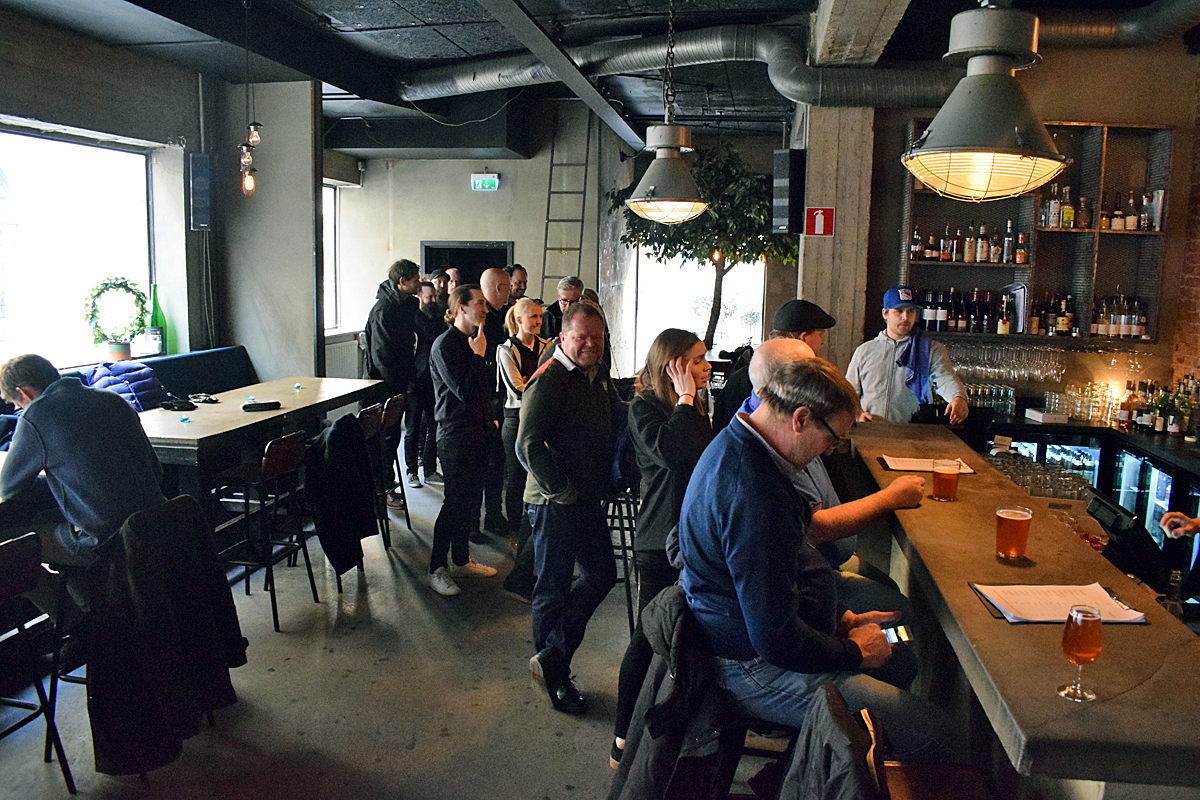 Det blev snabbt kö när de väntande gästerna släpptes in på Brewers Beer Bar.