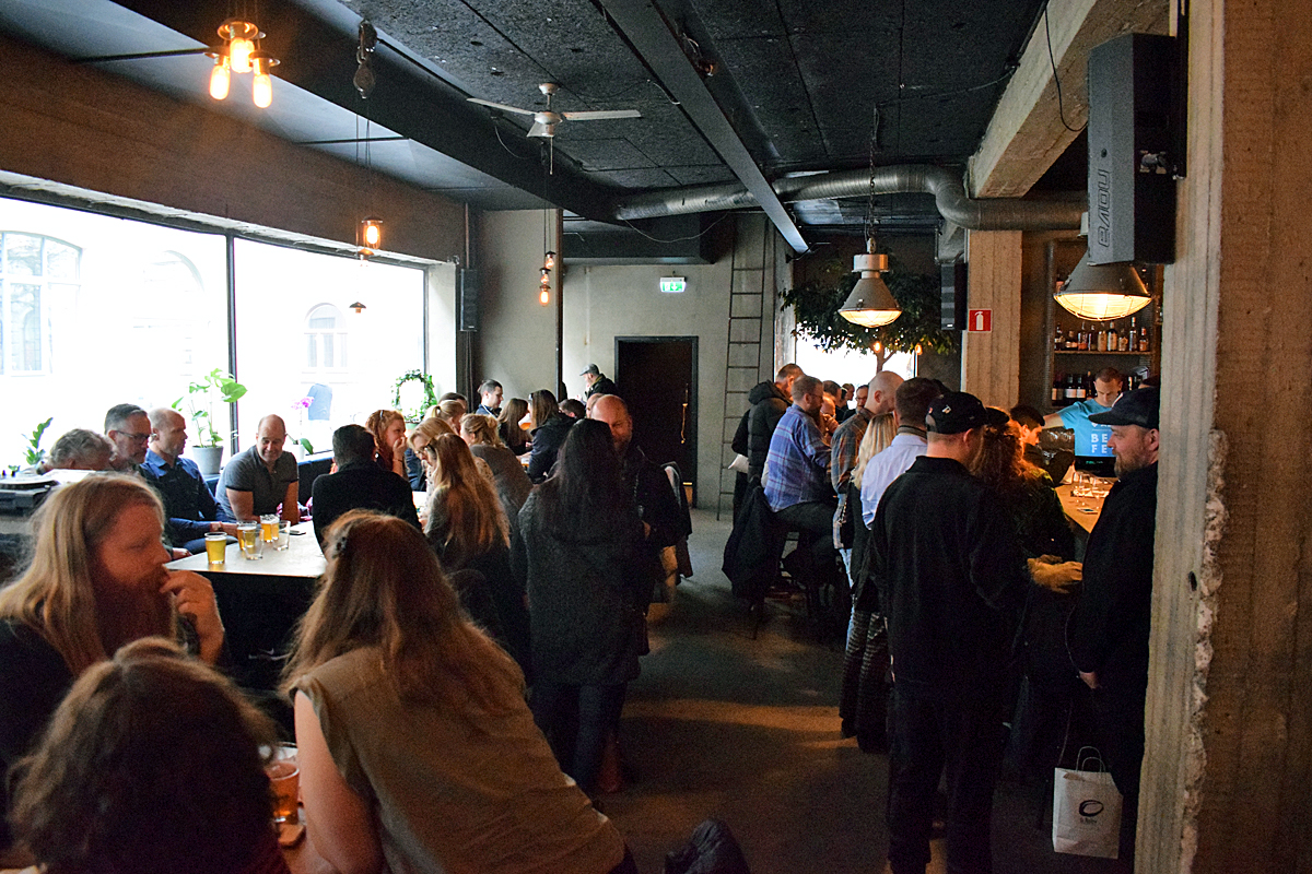 Redan före öppning var det kö utanför och det blev snabbt en hel del folk som tog sig in för att prova det nya ölet.