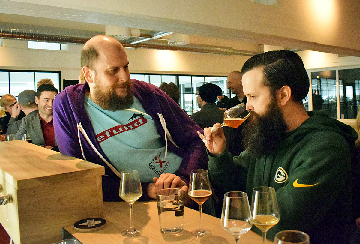 Ingemar Jansson och Fredrik Gustavsson passade förstås på att prova en del av Poppels öl.