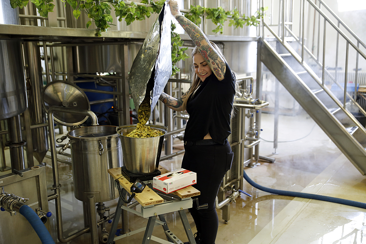 Även i Storuman bryggdes det öl denna söndag då  Gårdsbryggeriet 65ºN då Erika Kristoffersson bryggde öl och även där var den speciella humleblandningen grunden för ölet.