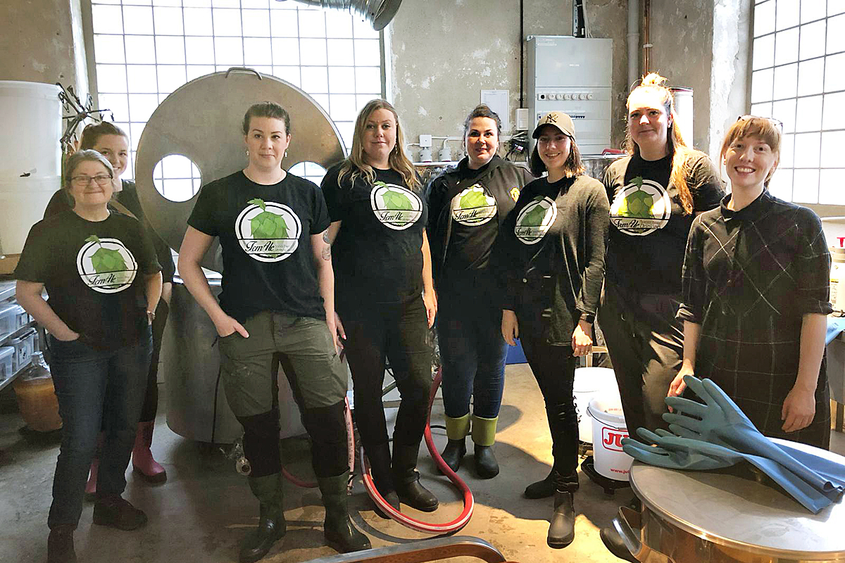 Hela gänget från FemAle samlat under bryggdagen hos Bearded Rabbit i Floda.