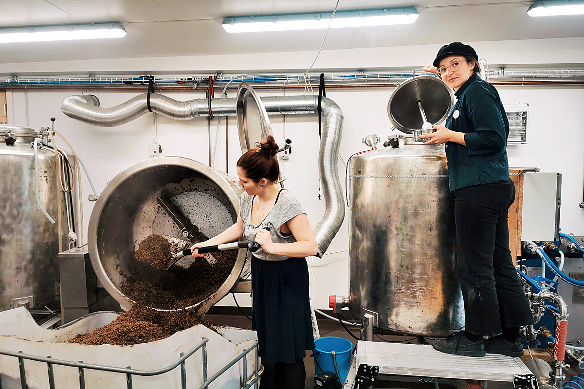Andrea Sohlström och Elma Smajic från Ferministas bryggde öl hos Pax Brygghus under söndagen.