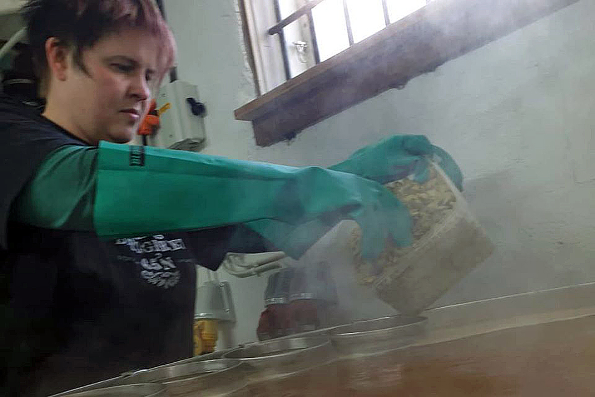 Hos Gårdsbryggeriet 65ºN i Storuman var det Erika Kristoffersson som bryggde öl med den speciella humleblandningen för Internationella kvinnodagen.