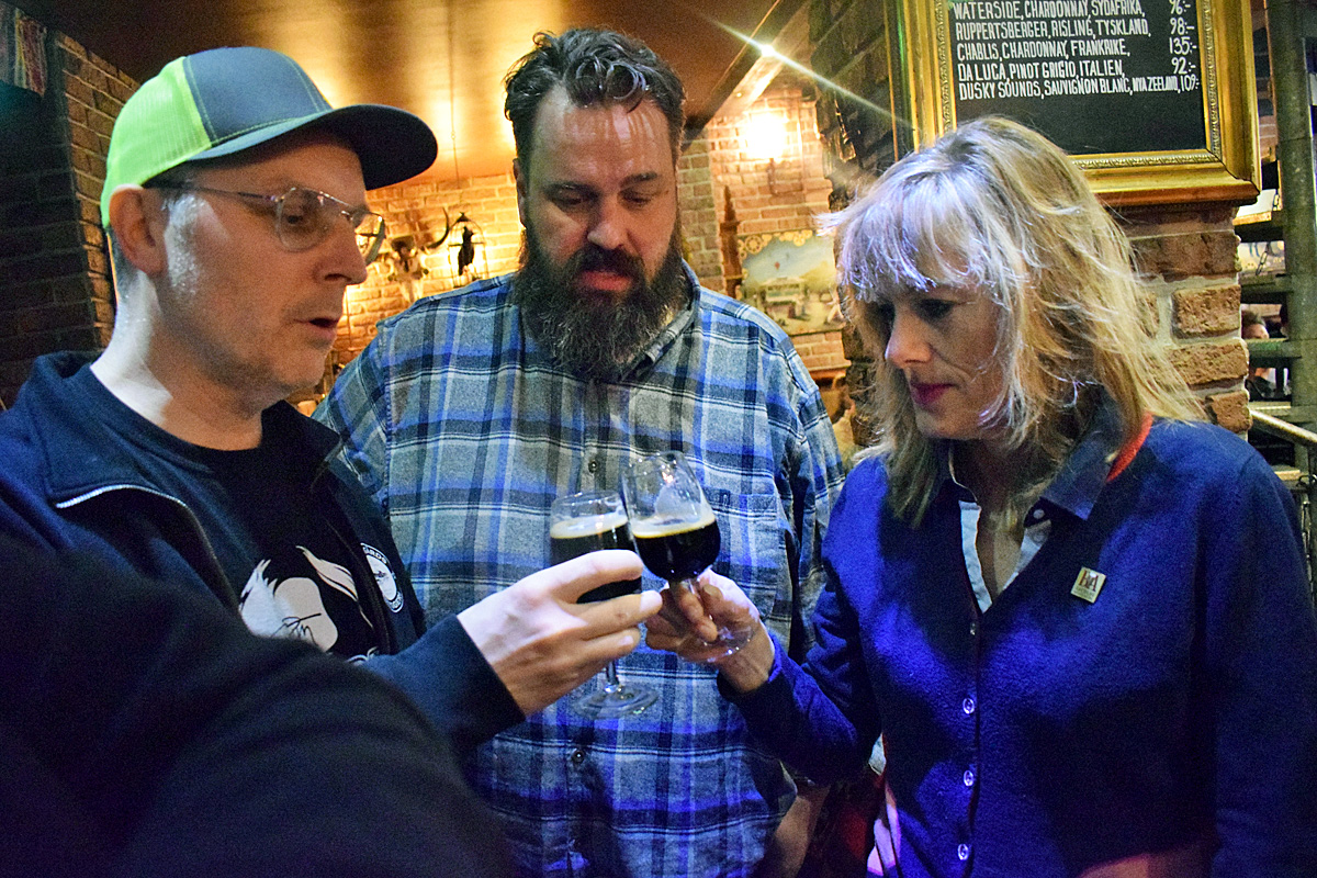 STEAMPUNK BAR. Lotte Peplow från Brewers Association var imponerad av Björn Falkeströms öl. I mitten Petur Olafsson.