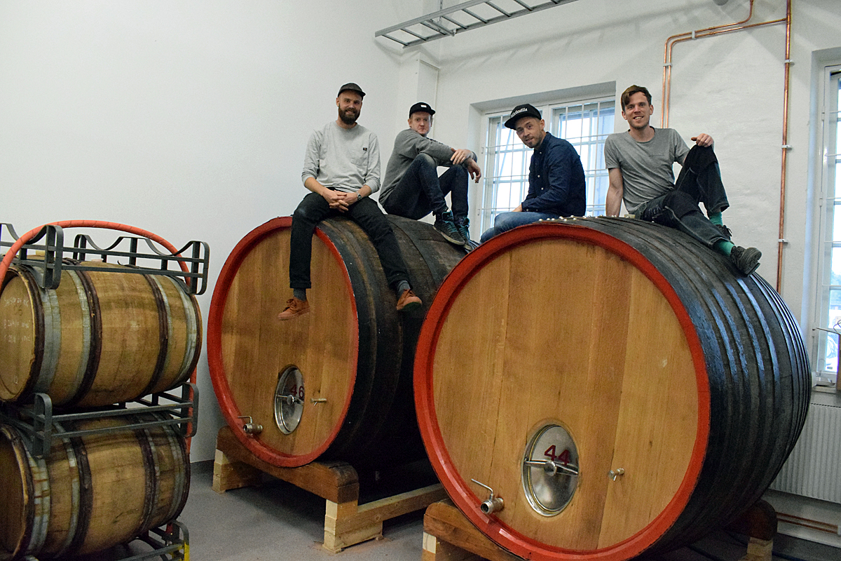 SEPTEMBER. Stockholm Brewing gör en spännande satsning ute vid Frihamnen. Michel Ahlin Wigardt, Tomas Hallgren, Niklas Jakobsson och Albin Larsson gillade att posera vid sina nya foeders.