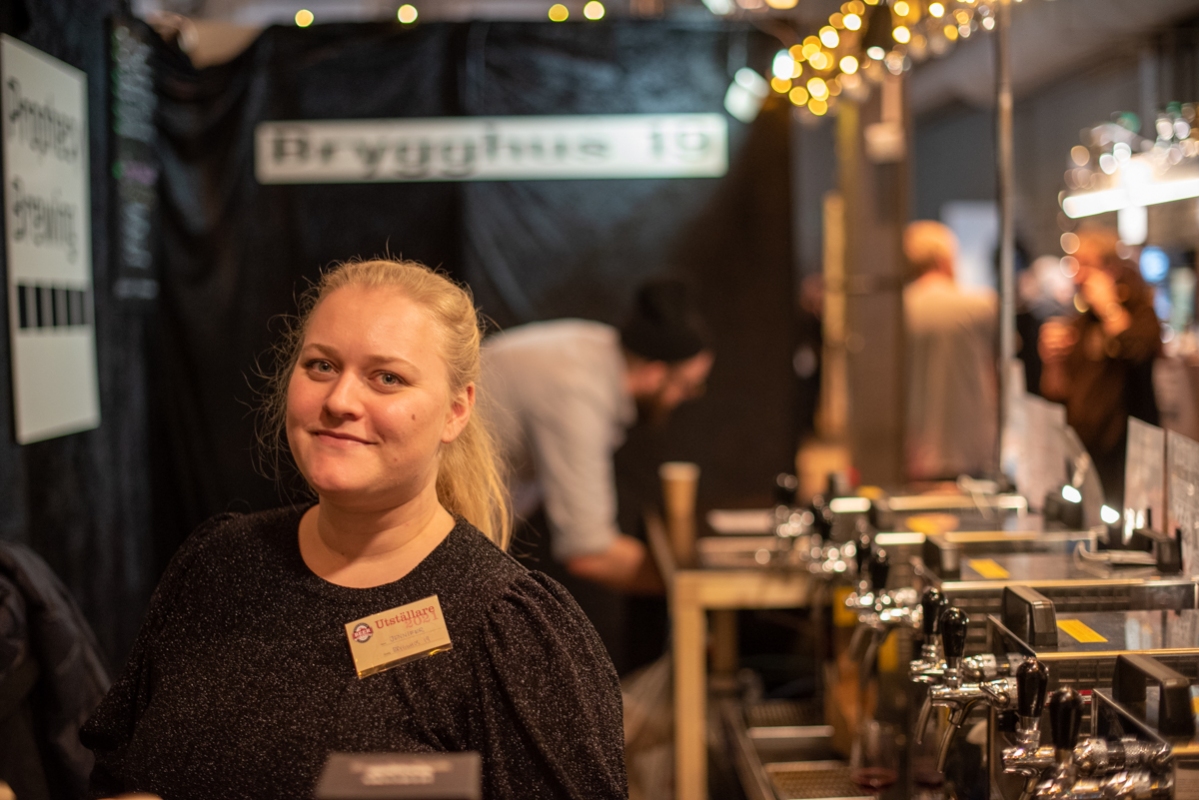 Det ena efter det andra bryggeriet börjar med sprit, Jennifer Olsson och Brygghus 19 är inte sämre. Det var både öl och sprit med till mässan. Foto: Peter Lindh