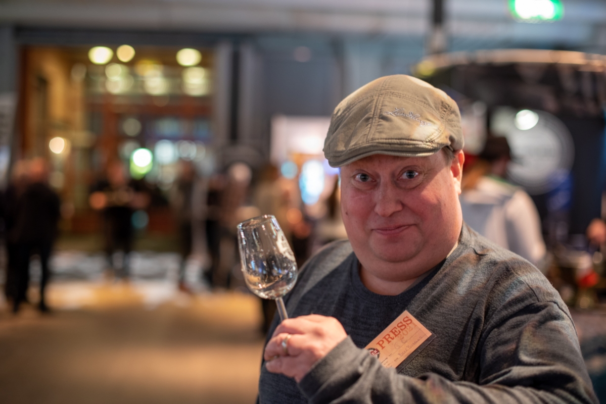 När vi ett par timmar försenade når mässan hittar vi Marcus Värme i Great Brands monter med en lång rad av öl från hans Nynäshamns Ångbryggeri. När vi frågar honom om dryckesråd så är svaret snabbt:
