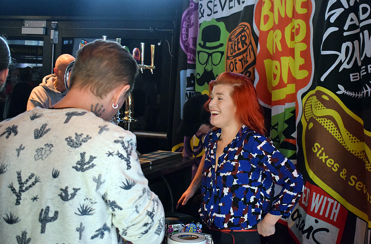 Pernilla Friari serverade öl med glatt humör hos Swedish Brewing Company.