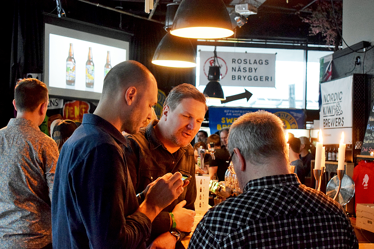 Rickard Wallin snackade öl med kompisarna under mässan.