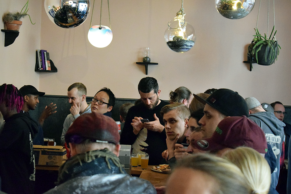 Omnipollos födelsedagsfest blev också en riktig ölfest. Det blev snabbt fullt med folk på Omnipollos hatt och så fortsatte det under hela kvällen.