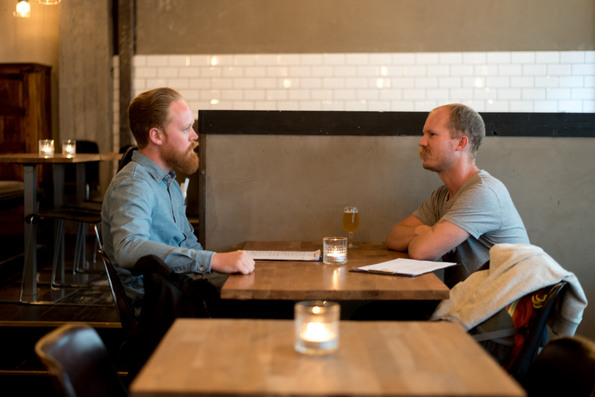"Jag har inte druckit Finback tidigare och har dåligt koll, men det jag druckit nu är bra", säger Fredrik Johansson, till höger, som är på Brewers Beer Bar tillsammans med kompisen Dennis Haagensen.