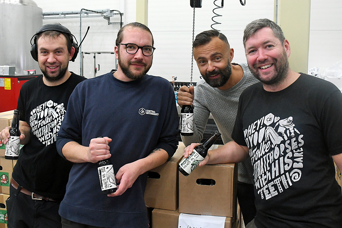 Centralbryggeriet gillar att ha samarbeten med hembryggare. Från vänster Hugo Hansen, Johan Pettersson, Aleks Spasojevic och Viktor Hansen.