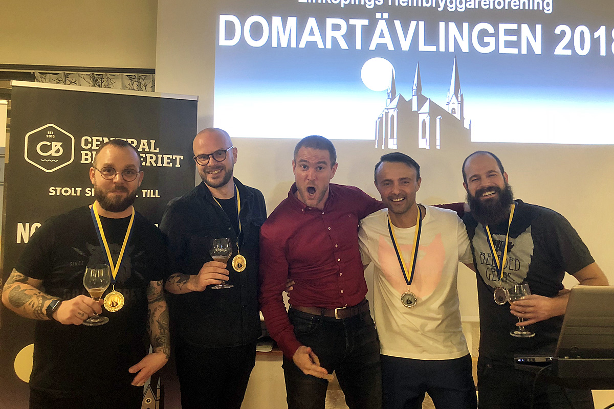 Alla vinnarna i hembryggartävlingen i fjol. Rickard Danielsson, Erik Stedt, Henrik Lindqvist, Aleks Spasojevic och Jonas Delin. (Foto:@nofont/Andreas Carlsson)