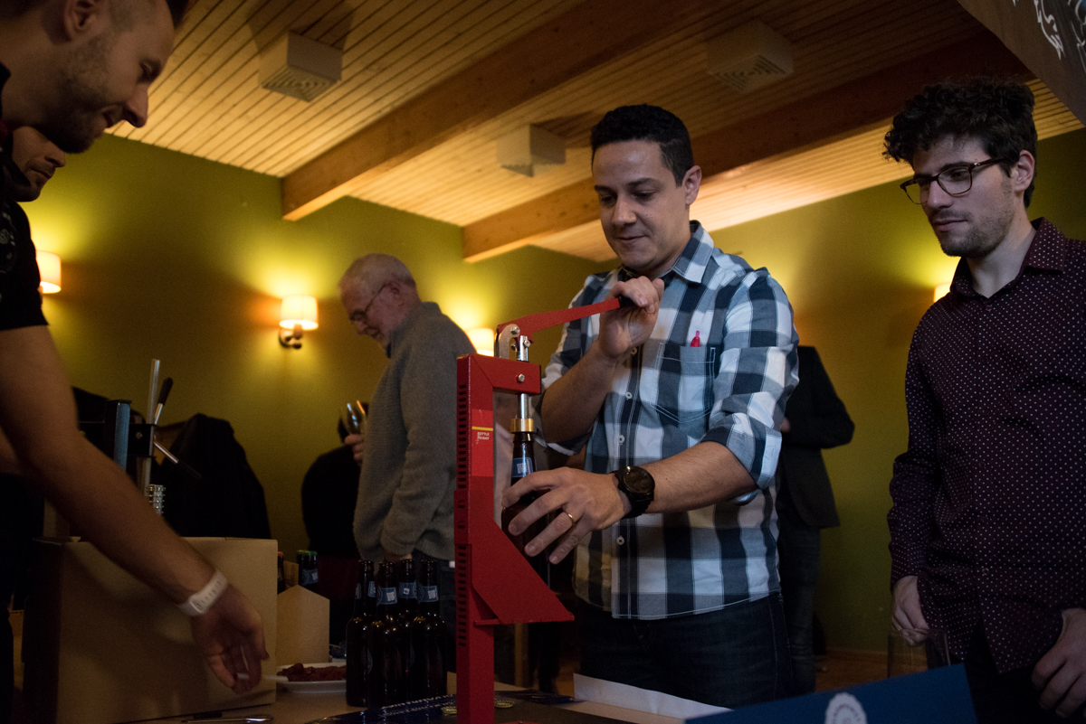 Ullisses Silva från Brasilien var en av många som provade på att kapsylera. Fem flaskor skulle fixas på så kort tid som möjligt. Den snabbaste lyckades på 21 sekunder.