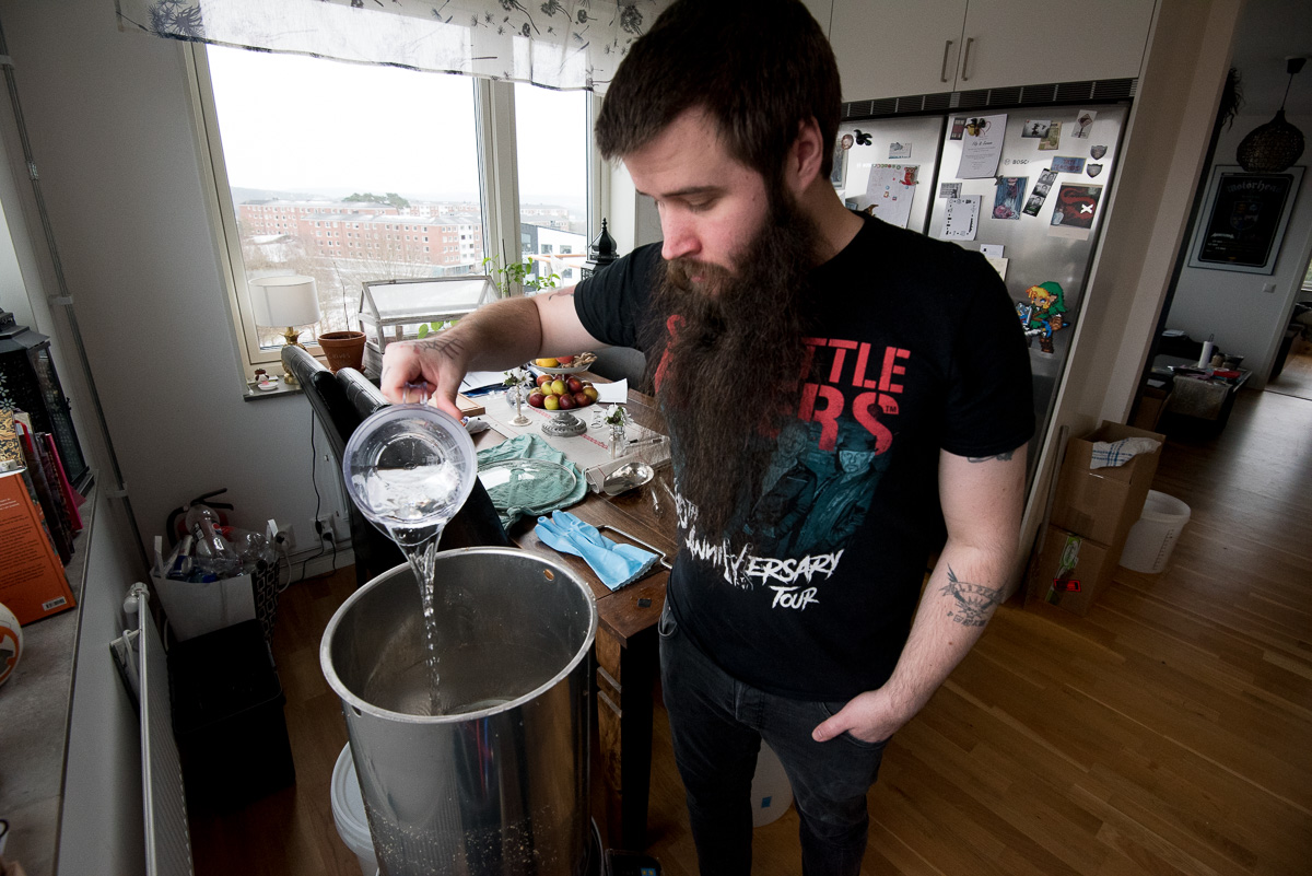 Daniel värmer lakningsvattnet på spisen, men nästa steg nörderiet blir en lakvattenvärmare.