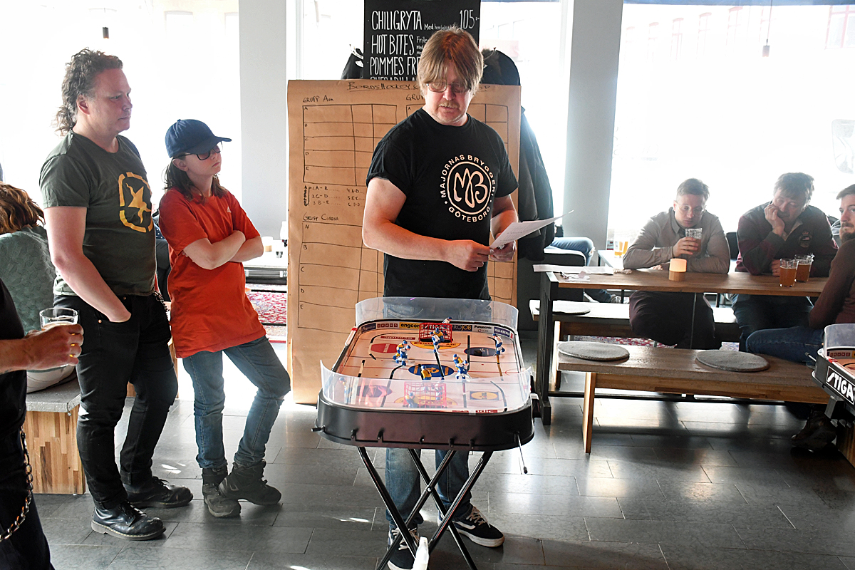 Bordshockey kan vara väldigt engagerande. Det märktes när Majornas Bryggeri genomförde en turnering i helgen.