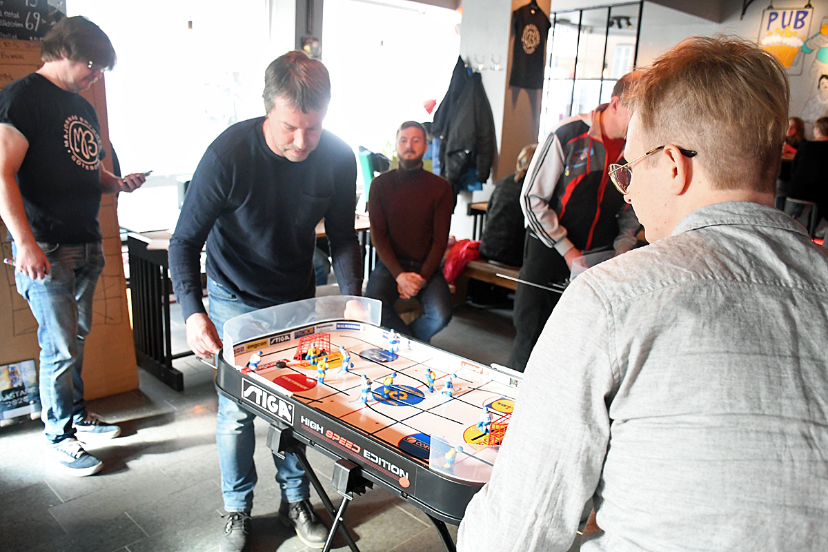 Bordshockey kan vara väldigt engagerande. Det märktes när Majornas Bryggeri genomförde en turnering i helgen.