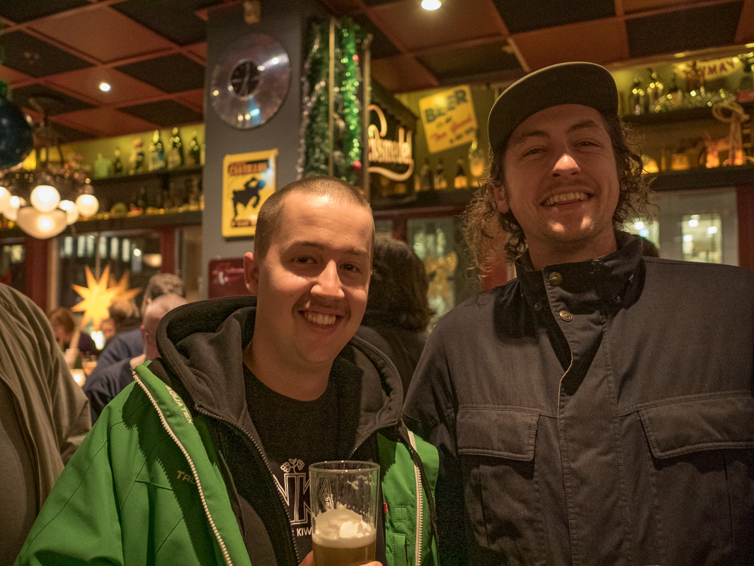 Pelle Sahlqvist och Levi Scott från NKB passade på att ta en välförtjänt öl och paus från byggandet och förberedelserna inför helgens invigning av nya bryggeriet.