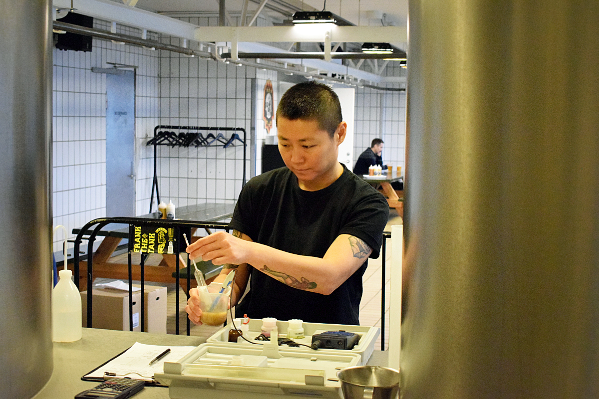 Huvudbryggaren Lan-xin Foo håller koll på processerna under bryggningen.