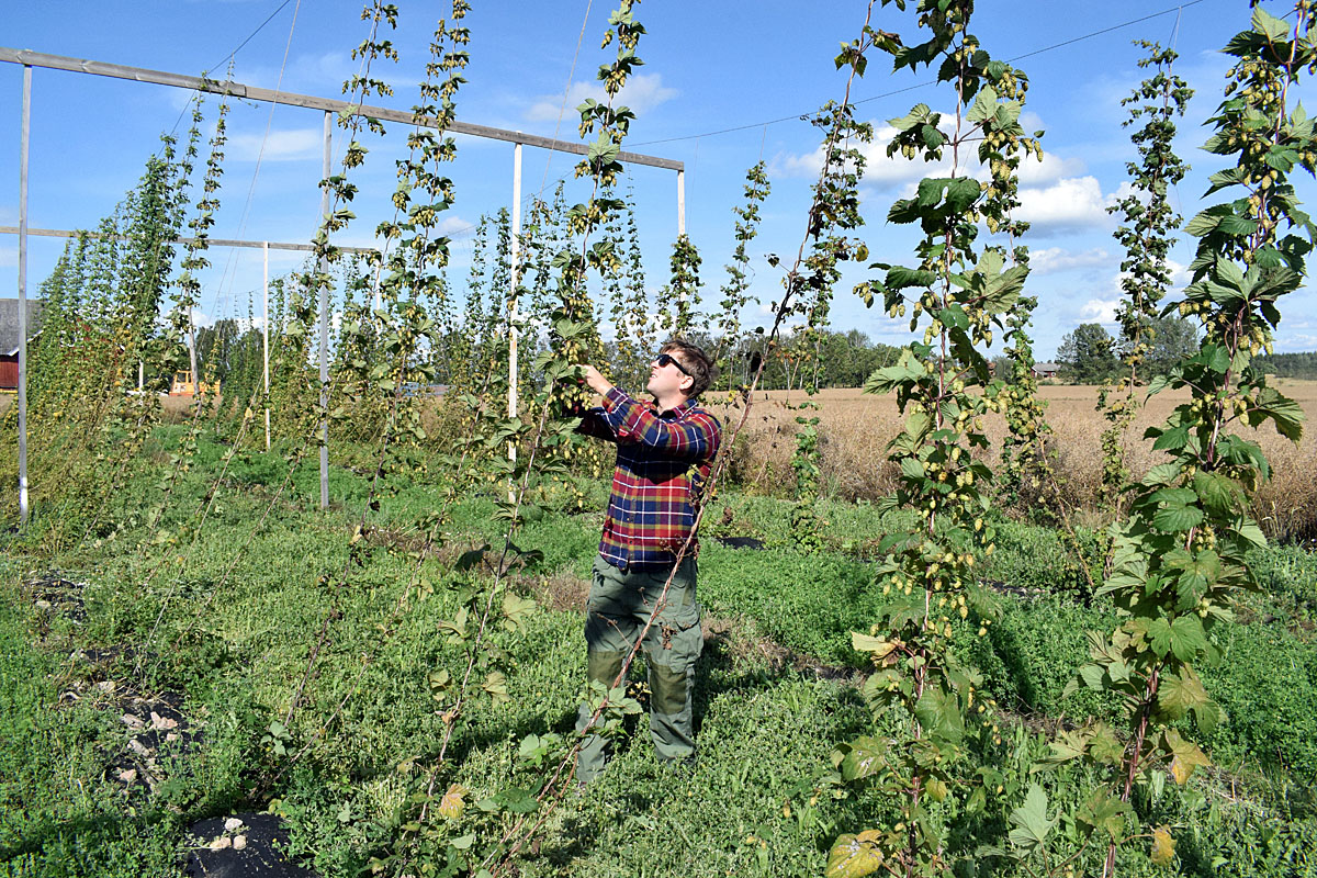 – Det är en del jobb med humleodlingar, framför allt på våren när de börjar att växa och sedan tar skörden tid, säger Lingheimer.