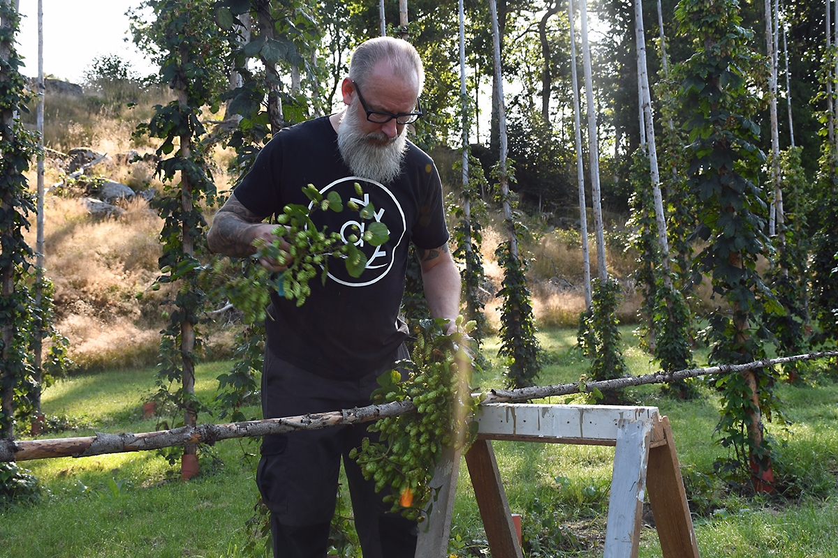 – Jag har den här humlen i en folköl och så tänkte jag fortsätta, sade Henningsson under plockningen.