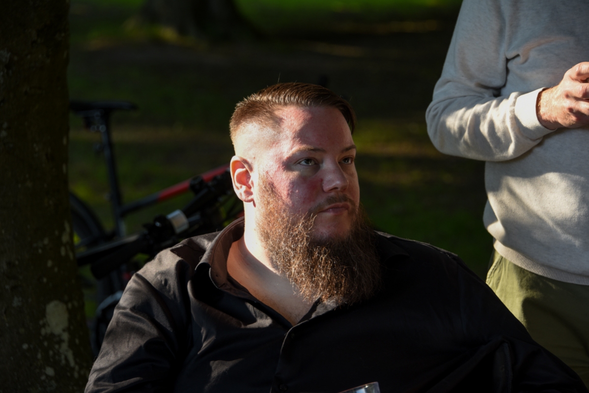 Alex Ek hade sökt sig till skugga för att njuta av sina öl.