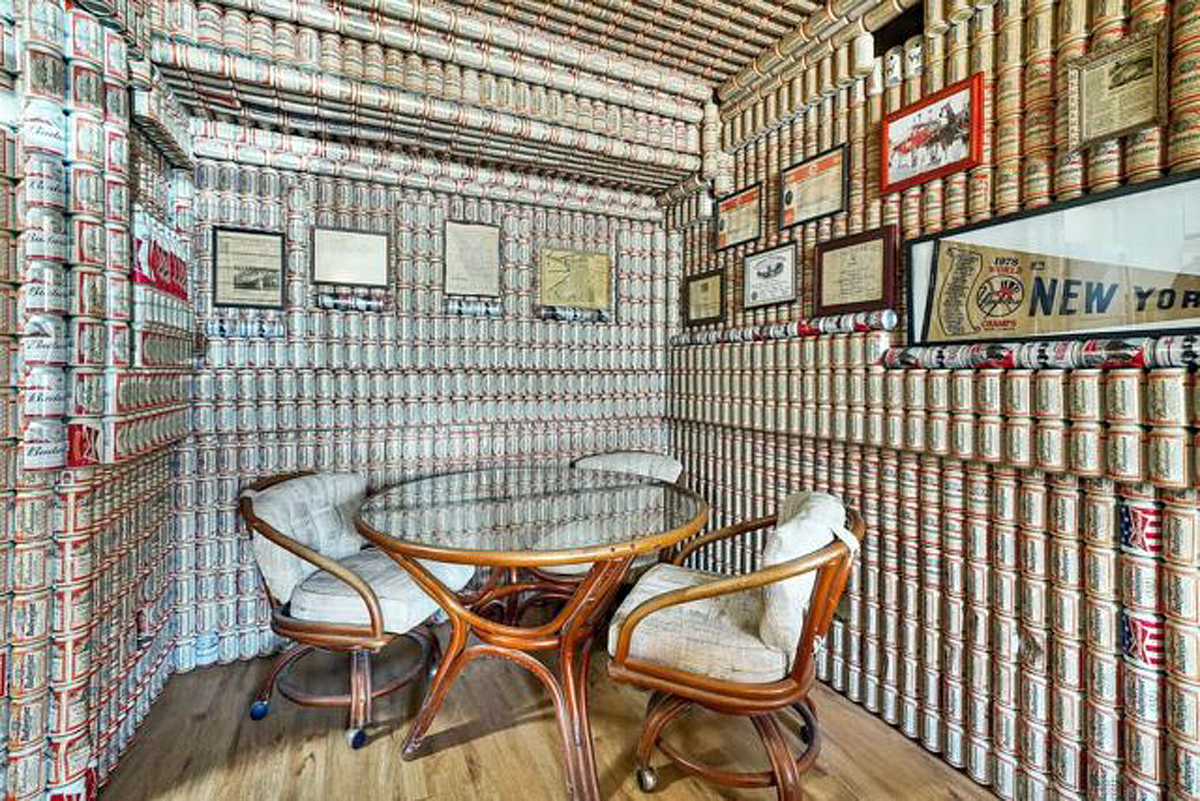 Det var efter ett dödsfall som huset kom ut till försäljning och på så sätt fick många upp ögonen för huset. Alla rummen är nämligen inredda med Budweiser-burkar längs väggar och tak och det är åtskilliga tusen burkar som gått åt för att skapa det hela.