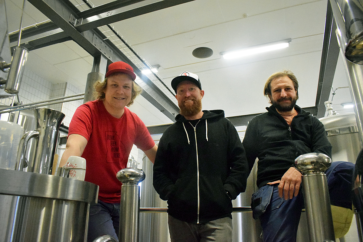 Fredrik Fölster och Tobbe Gustavsson på Brewski hade på tisdagen besök av Corey Artanis, i mitten. Artanis är huvudbryggare på populära 3 Sons.