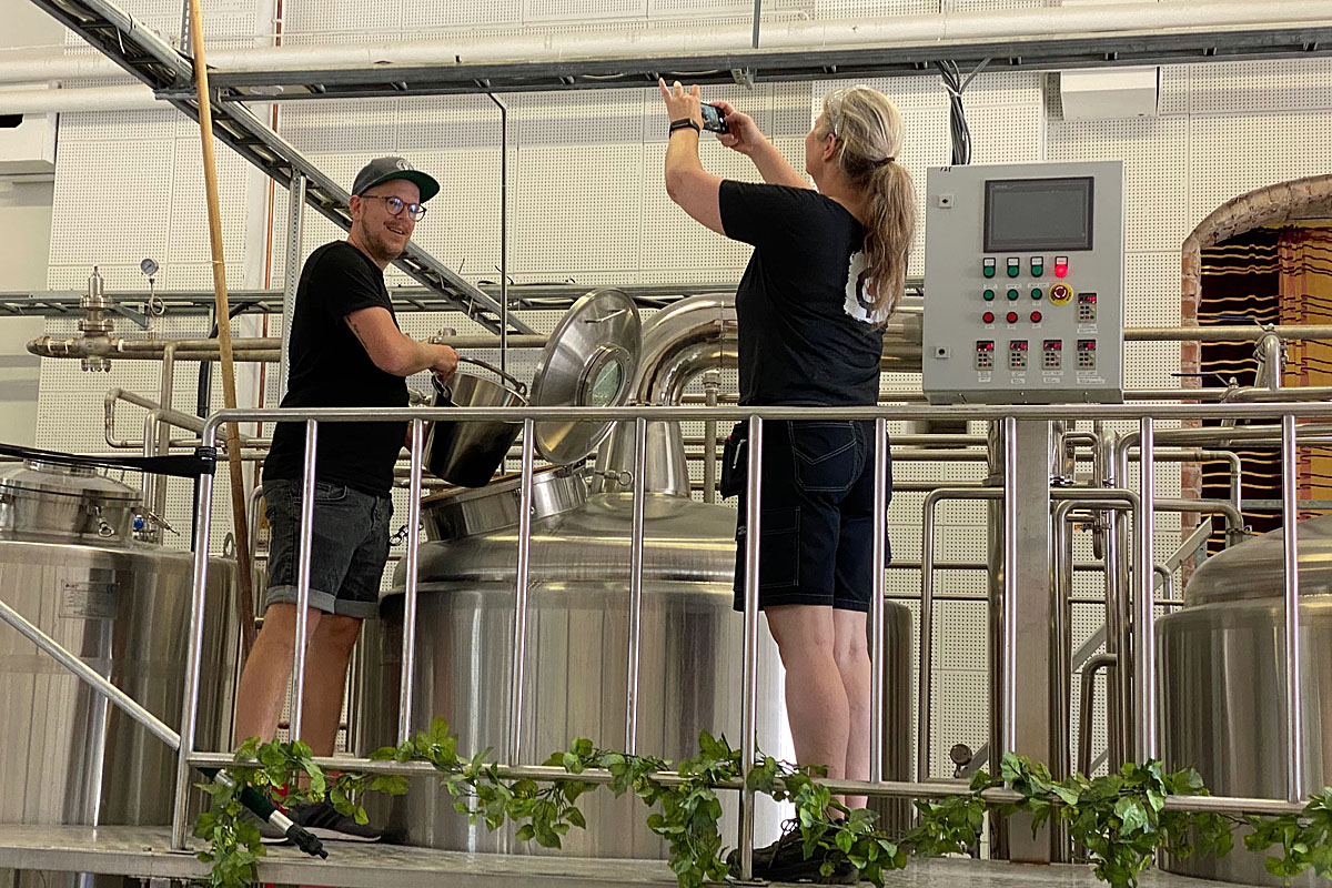 Dagens viktigaste insats gjorde Erik Frithiof när han poserade för Jessica Heidrch som tog den klassiska "hälla i humle-bilden".